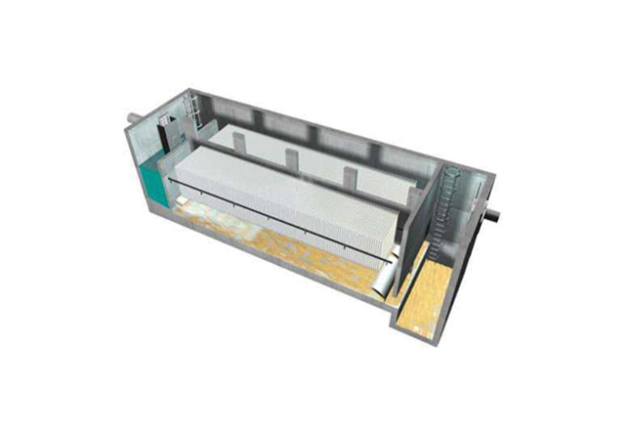 3、来水从水力颗粒分离器的斜板底部流向顶部,水中的固体颗粒在斜板表面沉淀;